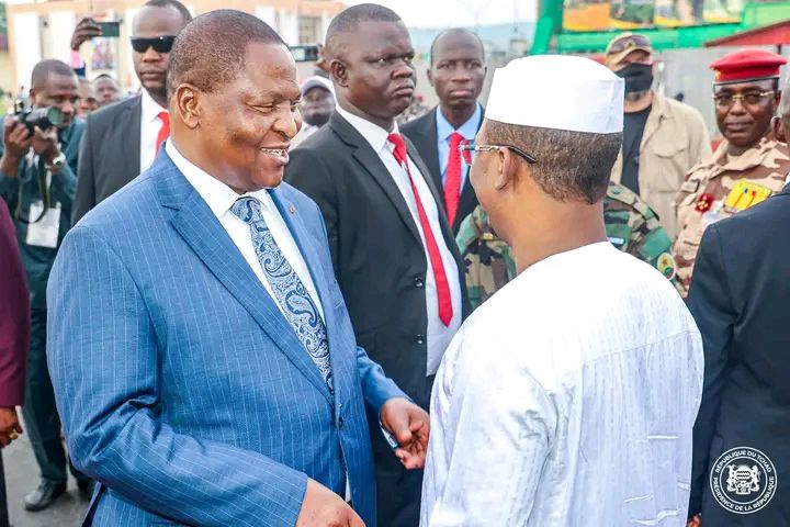 Mais c’est surtout la visite du dirigeant tchadien qui a cristallisé l’attention. À son arrivée, le Président de la République , Maréchal Mahamat Déby Déby Itno a été accueilli chaleureusement par son homologue, le professeur Faustin Archange Touadéra, dans une ambiance festive dominée par les fanfares, les danses traditionnelles et une foule en liesse.