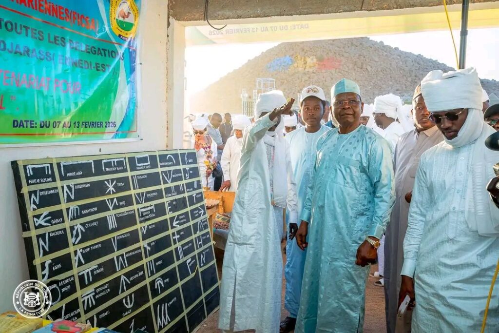 Après avoir assisté à la course de dromadaires organisée le dimanche 8 février 2026 dans le cadre de la sixième édition du Festival international des cultures sahariennes (FICSA), le Premier ministre, Ambassadeur Allah Maye Halina, a effectué une visite du village du festival à Amdjarass au cours de la même journée.