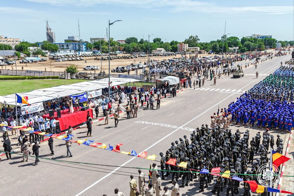 La cérémonie a débuté par la revue des troupes effectuée par le Chef d’État-Major général des armées, le Général Abakar Abdelkrim Daoud. À son arrivée, le Président Mahamat Idriss Déby Itno, vêtu de sa tenue militaire, a également passé les forces en revue avant de se recueillir devant le Monument des Martyrs, déposant une gerbe de fleurs en hommage à ceux qui ont donné leur vie pour la nation.