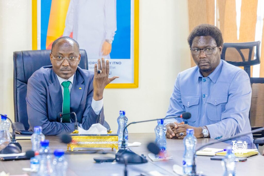 À N’Djamena, le Ministre des Télécommunications, de l’Économie Numérique et de la Digitalisation de l’Administration, Haliki Choua Mahamat, a présidé une réunion stratégique consacrée à l’état d’avancement du projet PMICE. Il était accompagné du Secrétaire d’État Abel Maina.