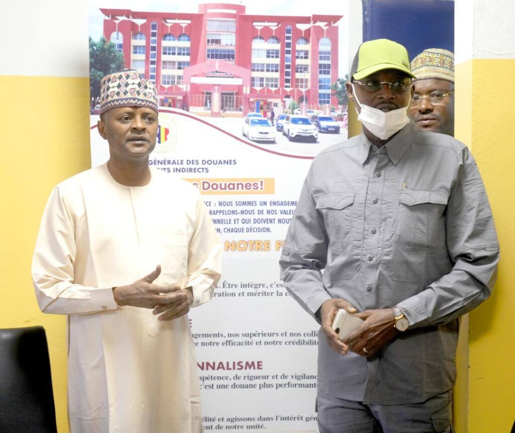 Accompagné de ses proches collaborateurs, le membre du Gouvernement a été accueilli par le Directeur Général des Douanes et Droits Indirects, le Général de Division Ousman Brahim Djouma. À cette occasion, une séance de travail élargie a réuni les responsables des services douaniers autour des enjeux liés à l’optimisation des recettes publiques.